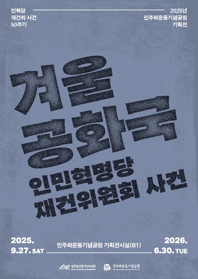 민주화운동기념사업회 민주화운동기념공원에서 인민혁명당 재건위원회 사건 발생 50주기를 맞이하여 기획전 '겨울공화국, 인민혁명당 재건위원회 사건'을 개최합니다.
